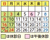 ※学会参加等により、別途休診日を設ける場合があります。電話、ホームページでご確認ください。