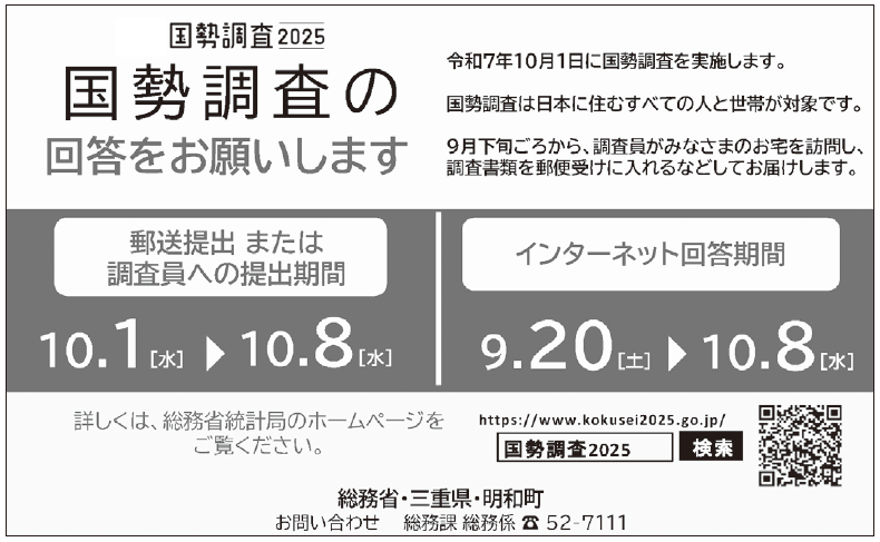 くらし 国勢調査2025 国勢調査の回答をお願いします 4/37 前の記事 次の記事 発行日 : 2025年09月01日 自治体名 : 三重県明和町 広報紙名 : 広報めいわ 2025年9月号 Tweet シェアする 令和8年1月11日(日)に二十歳の集いの開催を予定しています 世界アルツハイマーデー/世界アルツハイマー月間
