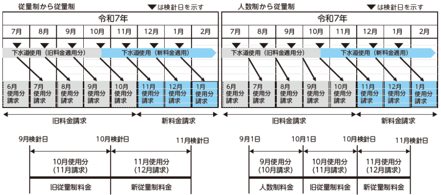 10月1日から、下水道使用料は従量制に統一されますが、新料金での請求は12月請求分(11月使用分)からとなります。