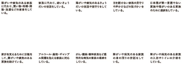 家族の手伝いをすることは、ふつうのことと思うかもしれません。でも、学校生活に支障がでたり、心身に不調が出始めたら無理をしているサインの可能性もあります。