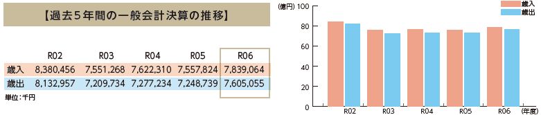 ※普通会計とは、統一的な基準で整理、比較するための統計上の会計区分で、玉城町では「一般会計」「山村振興事業会計」を合計し、会計間の重複額を控除したものをいいます。