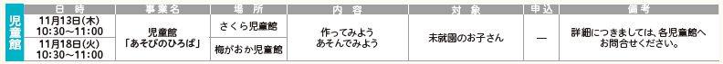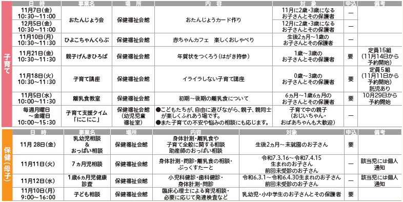 外城田保育所:11月5日(水)・19日(水)午前中【電話】58-3925