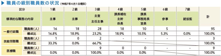 ※町の給与条例に基づく給料表の級区分による職員数です。
