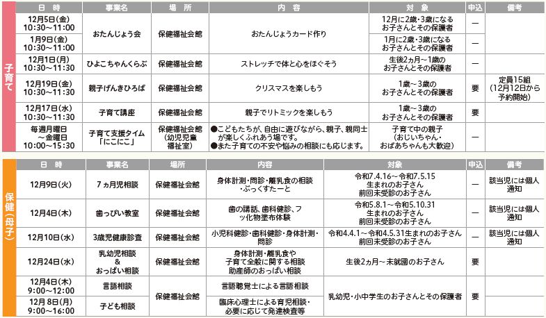 有田保育所:12月11日(木)・18日(木)午前中【電話】58-4411
