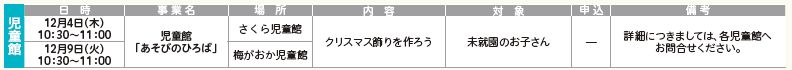 下外城田保育所:12月10日(水)・17日(水)午前中【電話】58-4932