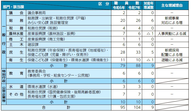 ▽部門別職員数の状況と主な増減理由(各年4月1日現在)