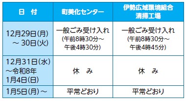 ※年末は混雑が予想されますので、早めの搬入をお願いします。