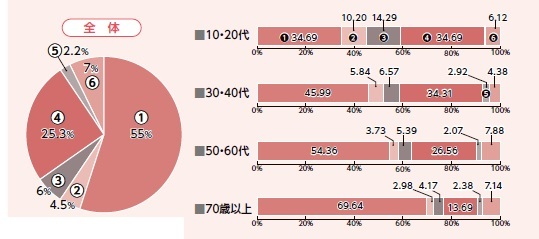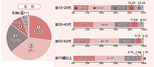 →年代が上がるにつれて、「住みやすい」「どちらかといえば住みやすい」と回答された人の割合が高いです。