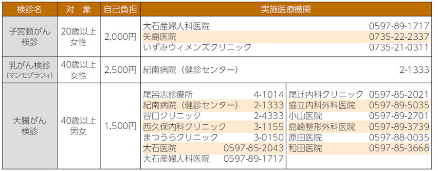 ※集団検診の日程については、4月に対象者に送付した“令和7年度御浜町各種がん検診等のお知らせ”(青色の用紙)を参照ください。