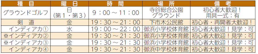 ※御浜小学校で金曜日に活動しているインディアカチームは2チームあります。