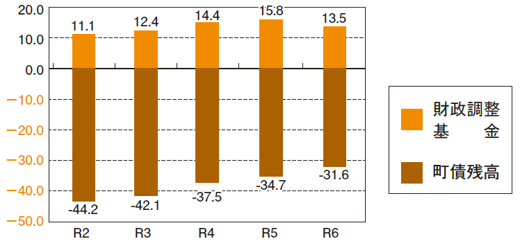 また、町債残高も、31億5,797万円で前年度比3億782万円減少しています。