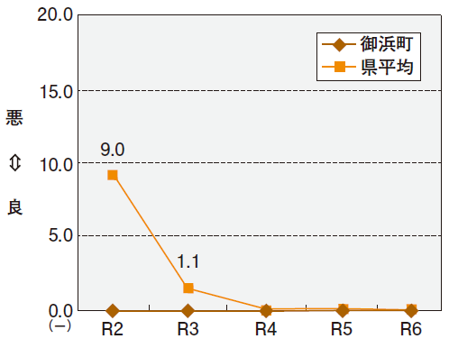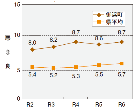 それぞれの指標について、実質公債費比率は県平均を上回る8.7%となり、将来負担比率は充当可能な財源等の額が将来負担額を上回るため「―」となっています。指標のうち、実質赤字比率、連結実質赤字比率については、町は黒字のため比率はありません。