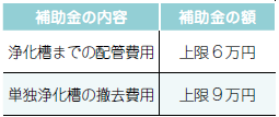 なお、設置に伴う分担金(表(2)参照)は記載のとおりです。また、町営浄化槽への設置促進策として、くみ取り式便所や単独浄化槽からの設置替えに、補助金(表(3)参照)があります。補助金を活用して、町管理の浄化槽設置をご検討ください。