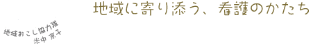 病院での看護は「治すこと」が中心でしたが、ここでの地域看護は、みなさんがこの町で元気に暮らすための支えだと実感しています。治療だけでなく、暮らし全体を支えることの大切さを肌で感じています。