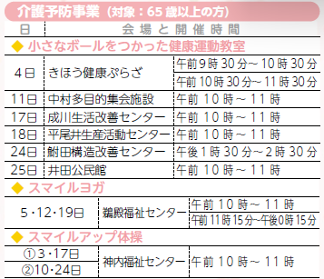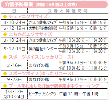 ※すべての介護予防事業は予約が必要です。詳しくは、きほう健康ぷらざ(【電話】29-3511)まで。