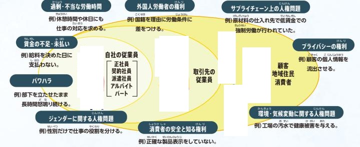 人権上の問題が発生すると、企業にとってイメージダウンなどの経営リスクがあり、従業員や取引先、地域社会にも悪影響を与えます。