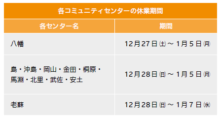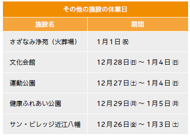 年末年始は、市役所・安土支所・総合医療センター・水道事業所などをお休みします。