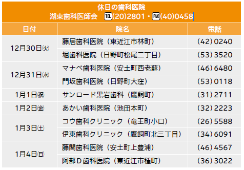 湖東歯科医師会【電話】20-2801・【FAX】40-0458