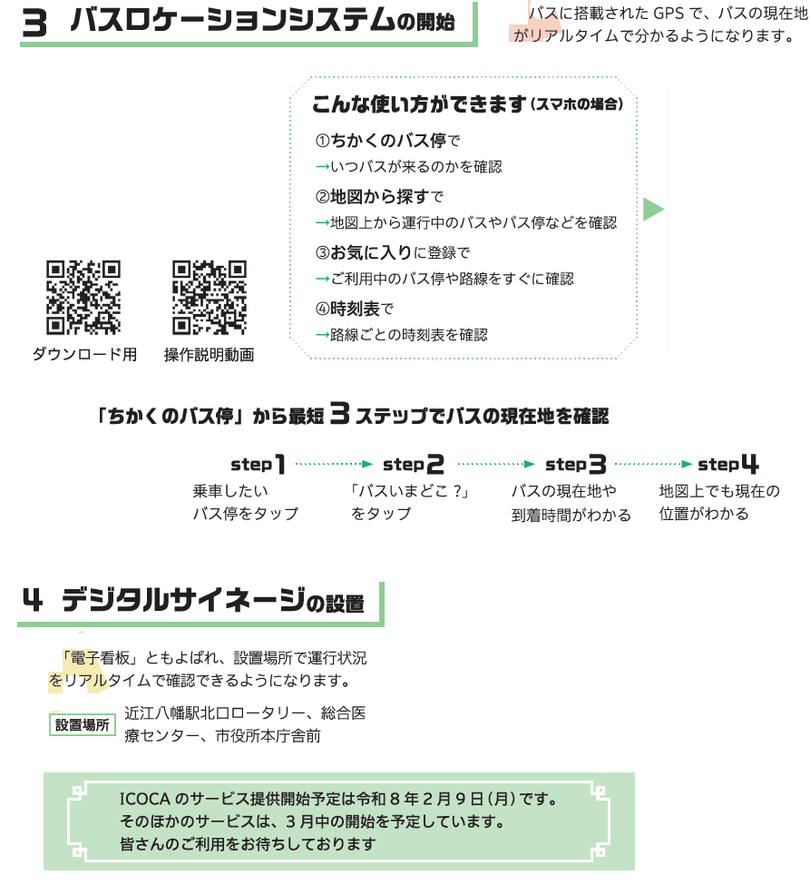 くらし デジタル技術であかこんバスがもっと便利に 3/39 前の記事 次の記事 発行日 : 2026年02月01日 自治体名 : 滋賀県近江八幡市 広報紙名 : 広報おうみはちまん 2026年2月号 問合せ:交通政策課 【電話】36-5515【FAX】36-5882 Tweet シェアする 特集 障がいのある人が自分らしく輝ける社会に(2) 近江八幡市消費生活センター発 【今月のくらしの豆知識】