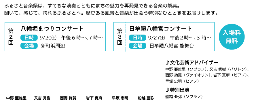 「八幡堀まつり」と「ふるさと音楽祭」は「ふるさと納税寄附金」を活用しています。