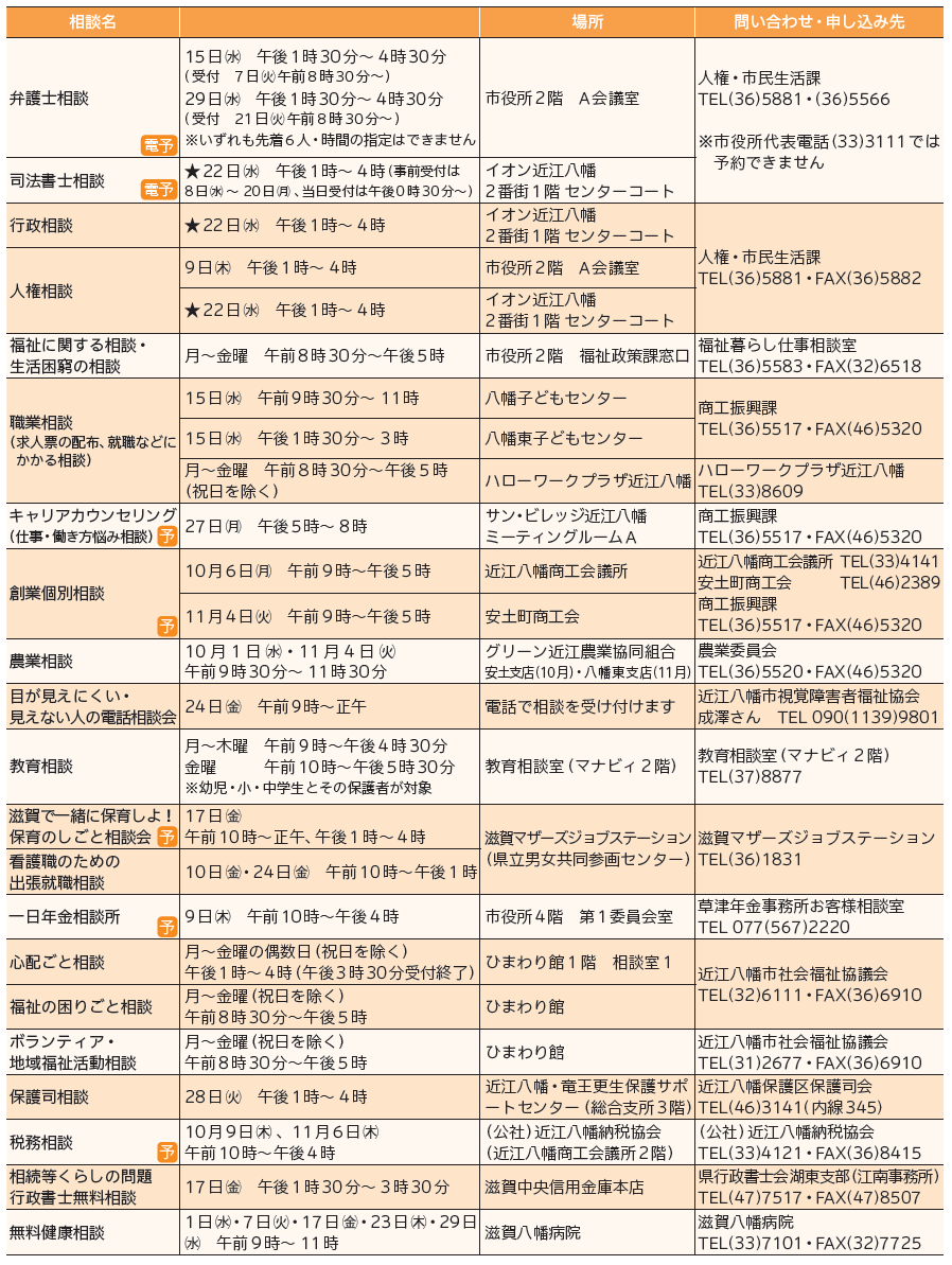 くらし お気軽にご相談ください【10月の各種無料サポートガイド】 22/36 前の記事 次の記事 発行日 : 2025年10月01日 自治体名 : 滋賀県近江八幡市 広報紙名 : 広報おうみはちまん 2025年10月号 ★一日行政相談所(行政なんでも相談所)開催日です。詳しくは本紙16ページをご覧ください。 Tweet シェアする 善意のともしび 市のしせつだより【文化会館】