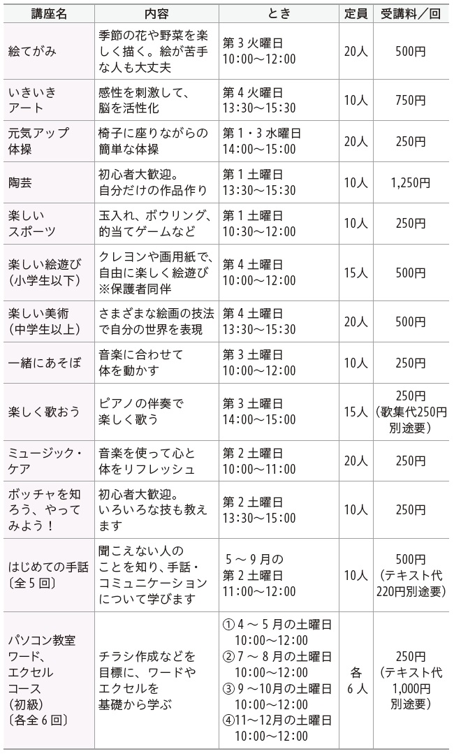 誰でも、気軽に楽しく参加できる講座です。詳しくは、障害者福祉センターにお問い合わせください。