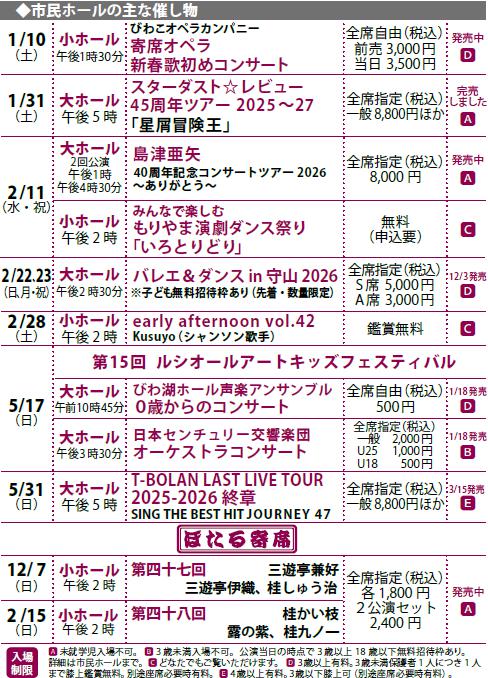 問合せ:公益財団法人 守山市文化体育振興事業団