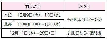 12月29日(月)~1月4日(日)のブックポストへの返却はご遠慮ください。