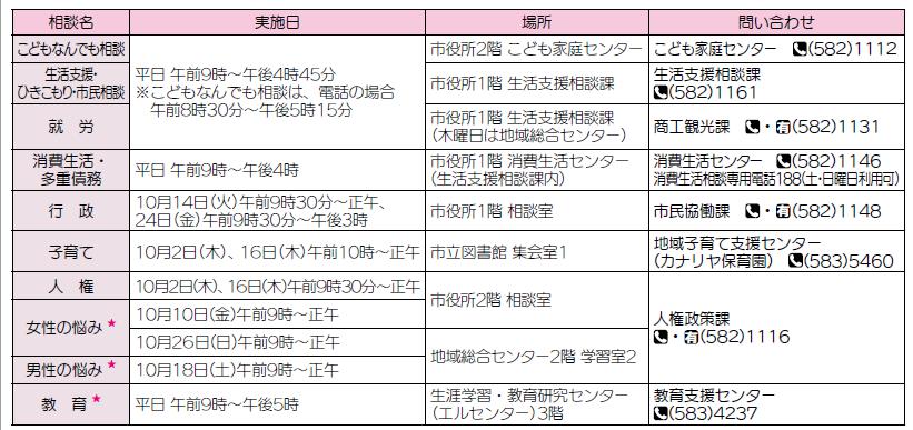 くらし 相談コーナー 40/53 前の記事 次の記事 発行日 : 2025年10月01日 自治体名 : 滋賀県守山市 広報紙名 : 広報もりやま 令和7年10月1日号 守山市公式LINEのメニューからもご覧いただけます※ 相談無料・予約不要(一部を除く) ※守山市LINE公式アカウントの友だち追加は表紙の二次元コードから ★印の相談は事前申込が必要です Tweet シェアする 安全・安心メール登録受付中 [市内各児童館]ちゃいるど広場