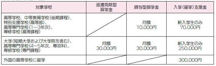 高等学校や大学などに進学または在学する学生、外国の高等学校に留学する学生で、経済的な理由により修学が困難な人に学資を貸与します。