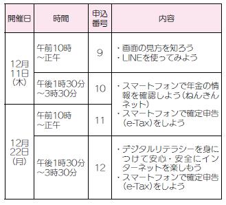 スマホの初心者から少しステップアップした内容を学びたい人まで、幅広い内容の講座を用意しています。多くの皆さまの参加をお待ちしています。