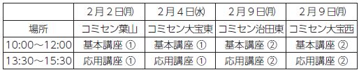 定員:各10人※先着順(複数講座申込可)