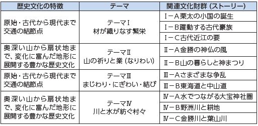 歴史文化要素を、歴史的な性格や位置づけに応じて、周辺の環境を舞台に一体的・総合的にとらえたものを関連文化財群とします