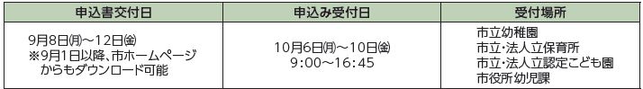 ■保育園・幼稚園などの入園申込書の交付・受付の日時と場所
