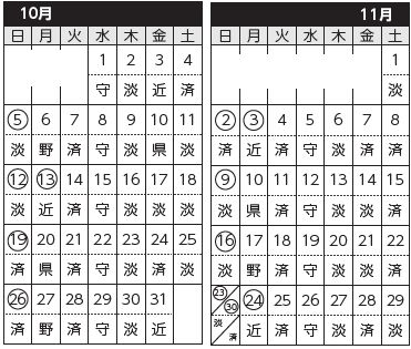 くらし 二次救急(内科・外科系)診療当番 18/30 前の記事 次の記事 発行日 : 2025年10月01日 自治体名 : 滋賀県栗東市 広報紙名 : 広報りっとう お知らせ版 2025年10月号 時間:土・日・祝日・休日9:00~翌9:00、平日18:00~翌9:00 小児救急は済生会滋賀県病院を受診してください。 軽症の場合、〇印の日は、湖南広域休日急病診療所を受診ください。 Tweet シェアする 骨髄移植後等の予防接種再接種費用助成事業 休日や夜間の診療・相談