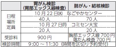 子宮頸がん、乳がん、胃がん(内視鏡検査)。いずれも2年度に1回で、詳細は受診券に記載。
