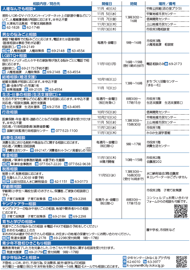くらし 相談コーナー〔10月15日~11月14日〕 25/41 前の記事 次の記事 発行日 : 2025年10月01日 自治体名 : 滋賀県甲賀市 広報紙名 : 広報こうか 2025年10月1日号 相談は無料ですので、お気軽にお越しください。 ※印のある相談は市内在住の方のみが対象です。 Tweet シェアする もっと知ろう! 国スポ・障スポ スポっとライト 消費者トラブルにご用心
