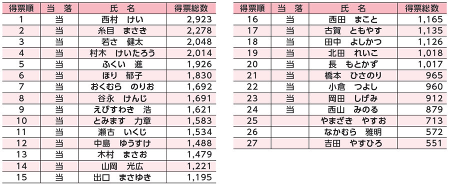 ※選挙の開票結果における候補者名は通称認定名であり、得票順に掲載しています。