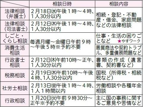 ※各相談は無料。祝日は除く。