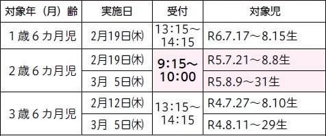 ※乳幼児健診は、受付から終了まで2時間程度です。来所人数により前後します。
