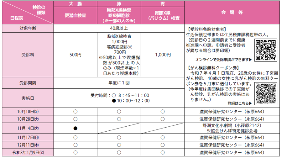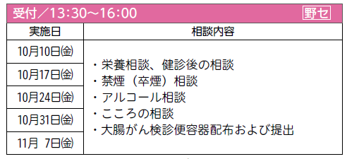 ※気象状況等により各種健診等が中止・延期になる場合があります。