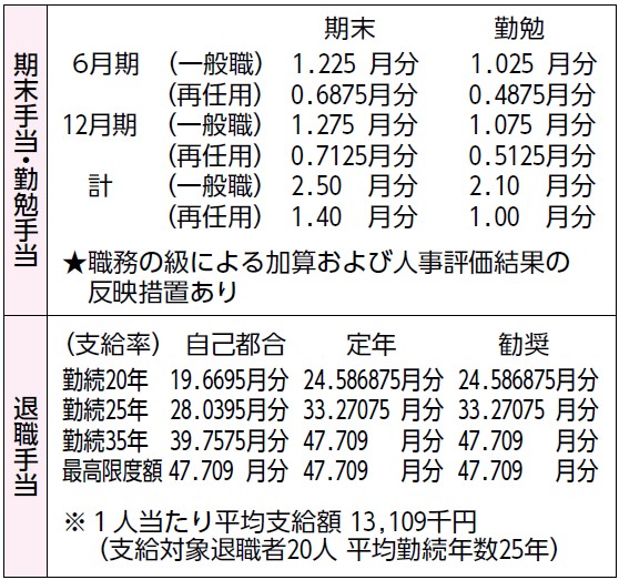 ▽期末手当・勤勉手当・退職手当(令和6年度実績)