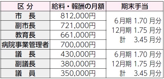 ※給料・報酬の月額の欄は、令和6年度末の条例本則の額