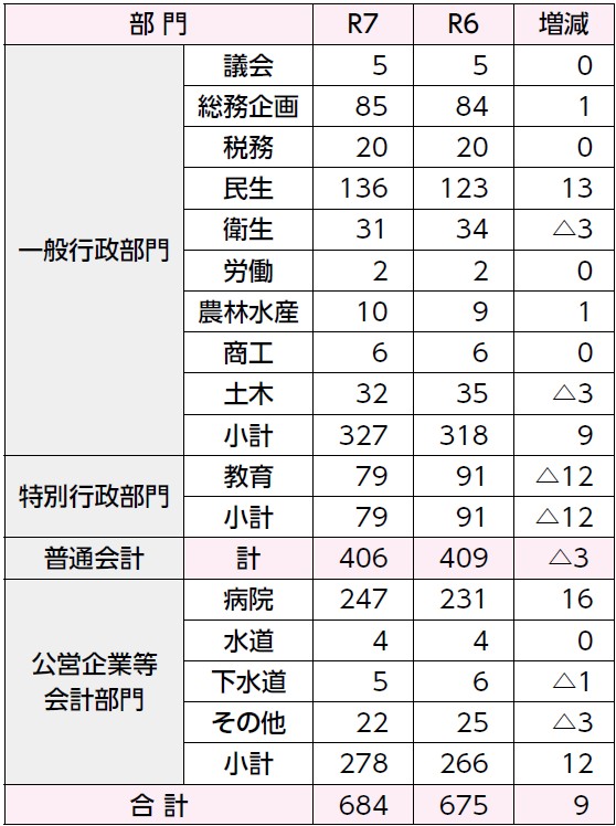 ◆定員(部門別職員)の状況(令和7年4月1日現在)