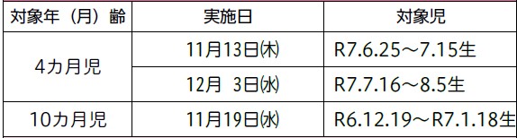 ※健診当日、ご自宅で体温測定や体調確認をしてください。発熱(37.5℃以上)や咳、鼻水、下痢、嘔吐などの体調不良がありましたら、健診を延期し、健康推進課までご連絡ください。