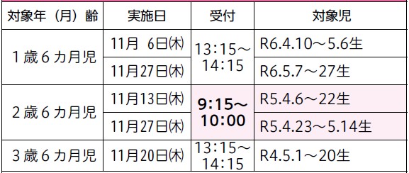 ・2歳6カ月児健診にはフッ素塗布がありますので、幼児用歯ブラシを持ってきてください。