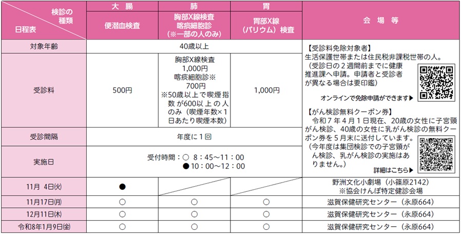 ※健診当日(午前健診は午前7時時点、午後健診は午前10時時点)に特別警報または暴風警報が出ている場合は中止します。