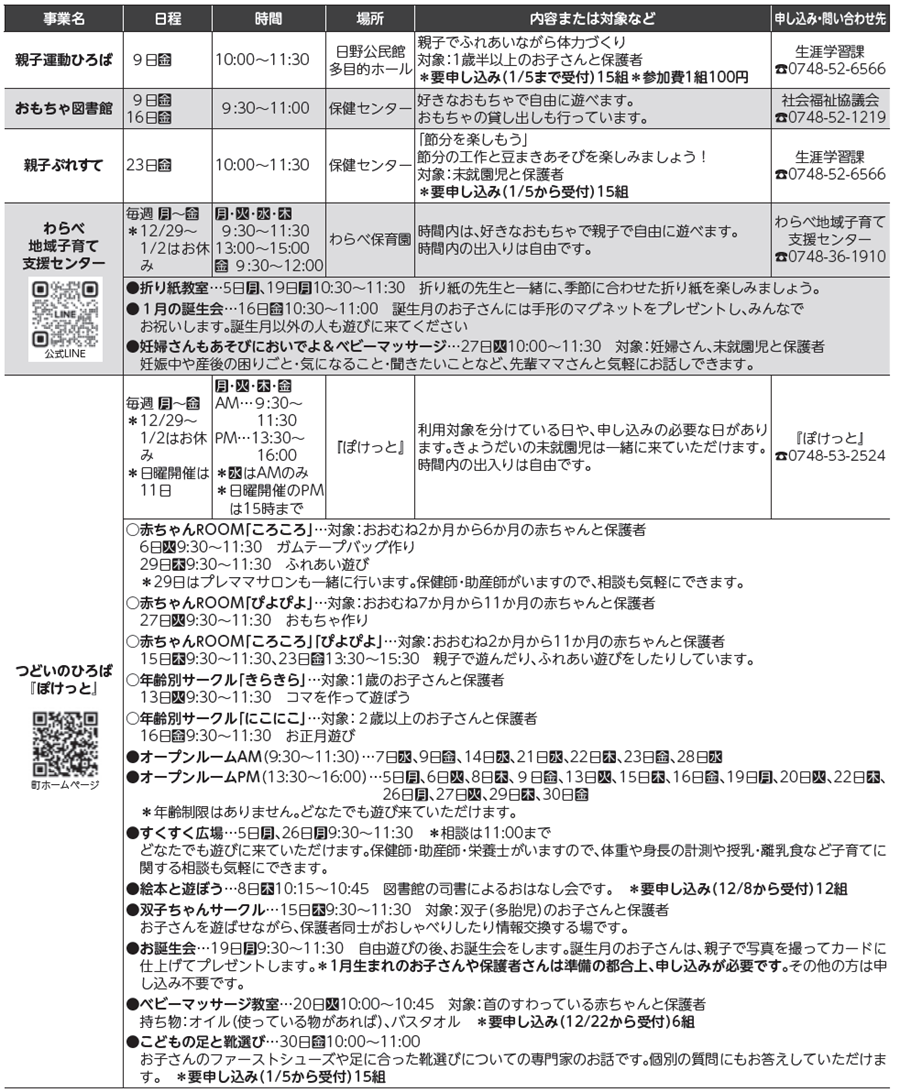 町では、子育てを応援するさまざまな事業を行っています。赤ちゃんやお子さんを連れて、気軽にお出かけください。