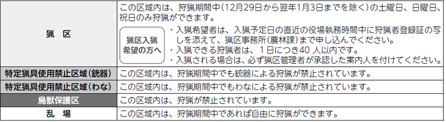 ※銃器による狩猟時間は暦による「日の出」から「日の入り」までです。