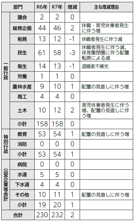 (3)職員数の状況(令和7年4月1日現在)(単位:人)